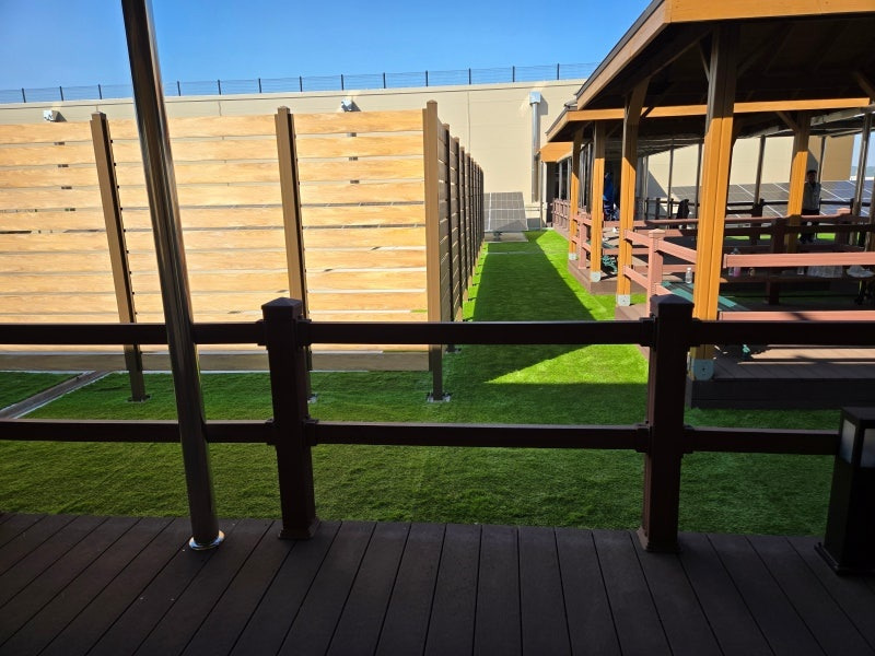 인조잔디 시공 후 옥상은 완전히 새로운 공간으로 태어났습니다. 직원들은 점심시간에 벤치에 앉아 담소를 나누고, 저녁에는 삼겹살 파티를 즐기기도 합니다. 삭막했던 옥상이 활기 넘치는 공간으로 변모한 것이죠.