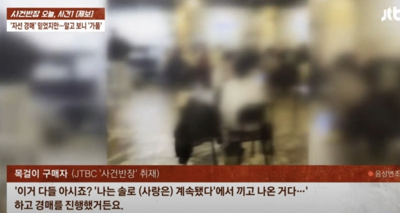 사건은 제보자 A씨가 지난 2월 말 B씨의 생일파티 겸 자선 행사에 참석하면서 시작되었습니다. B씨는 이 자리에서 한부모 가정을 돕기 위해 명품 가방, 액세서리, 진주 목걸이 등을 경매에 내놓았다고 합니다. A씨는 명품 브랜드 목걸이를 220만 원에 낙찰받았죠.