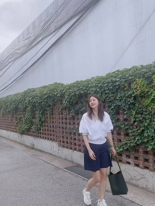 양정아는 화이트 셔링 블라우스에 네이비 반바지를 매치해 깔끔하면서도 세련된 여름 데일리룩을 완성했습니다. 특히 그녀의 168cm 늘씬한 몸매를 더 돋보이게 하는 화이트 스니커즈와 짙은 초록빛 토트백이 단조로운 스타일에 감각적인 포인트를 더했죠. 꾸미지 않은 듯 자연스럽게 넘긴 긴 생머리와 결점 없는 맑은 피부, 그리고 가볍게 웃는 표정까지 모든 것이 완벽하게 어우러졌습니다.