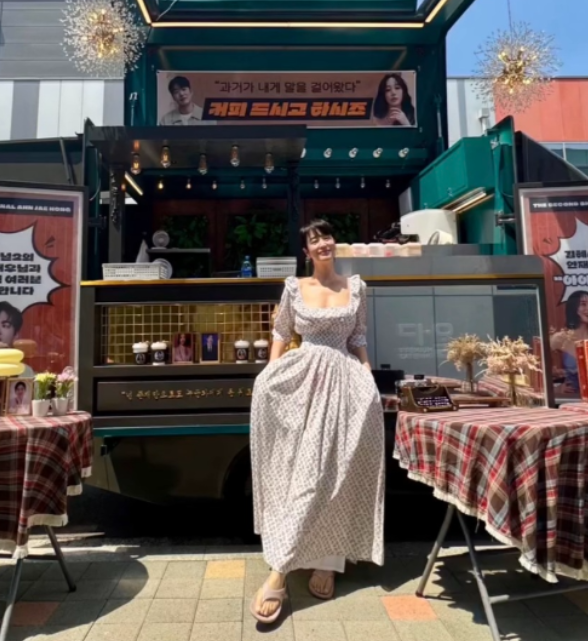 원피스에 담긴 꽃무늬 패턴은 부드럽고 로맨틱한 느낌을 주었으며, 프릴 디테일이 더해져 여성스러움을 한층 강조했어요. 프릴 디테일은 움직일 때마다 자연스럽게 흐르며, 원피스의 풍성한 실루엣을 더욱 부각시켰죠.