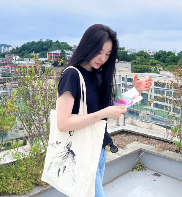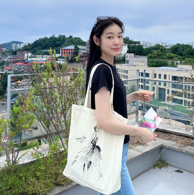 디올 앰버서더로 활동 중인 한소희 님은 같은 에코백을 전혀 다른 방식으로 연출했어요. 여성스러운 플라워 프린트 원피스에 에코백을 자연스럽게 매치하며 여리여리하고 사랑스러운 분위기를 자아냈죠. 그녀 특유의 우아한 미모와 로맨틱한 원피스 룩, 그리고 패셔너블한 에코백이 만나 감성적인 여름 데일리룩의 정석을 보여줬어요.