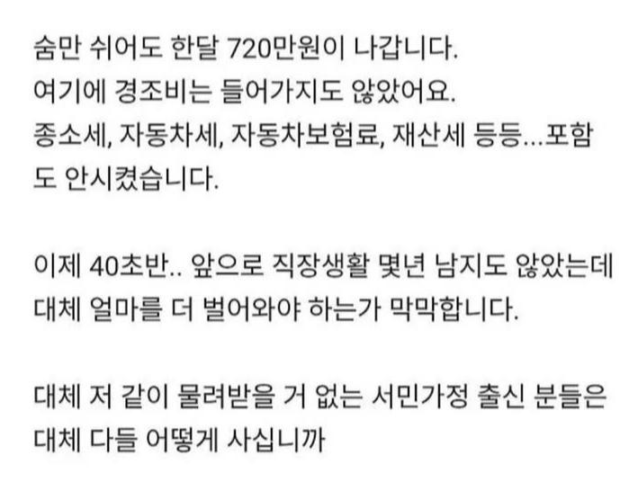 숨만 쉬어도 한달에 720만원 나간다는 사람