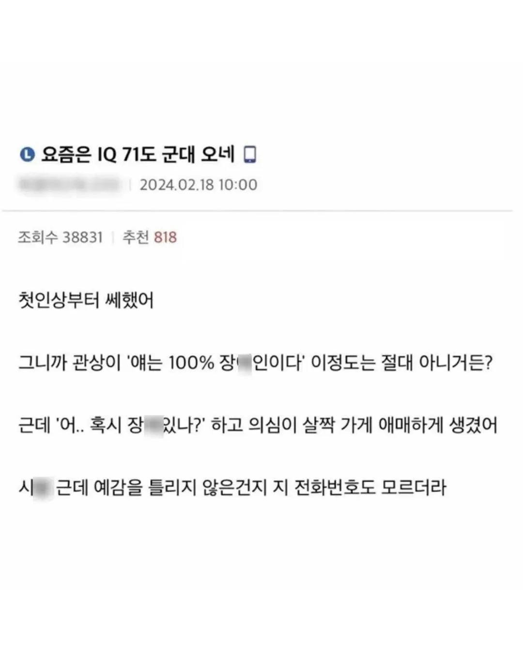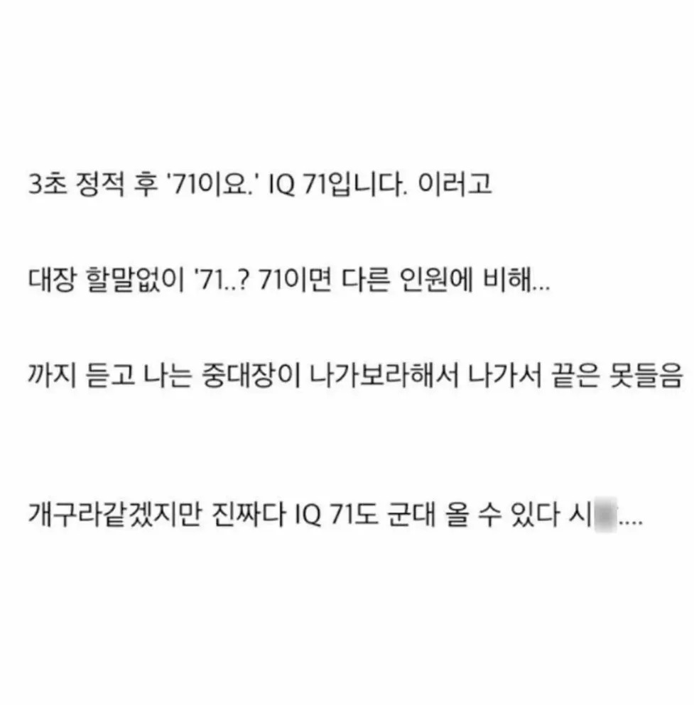 요즘은 IQ 71도 군대 오네요