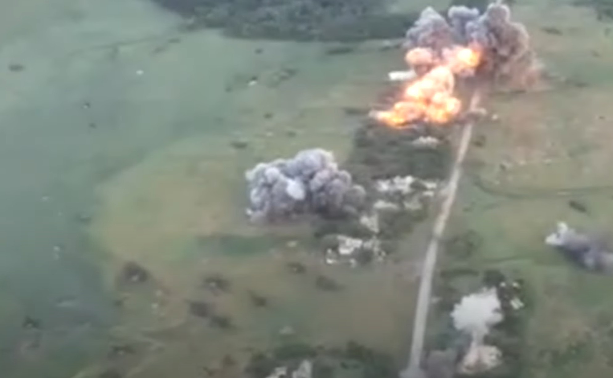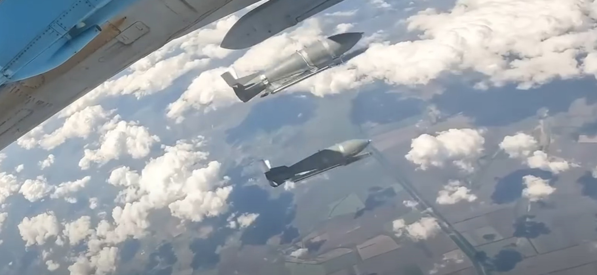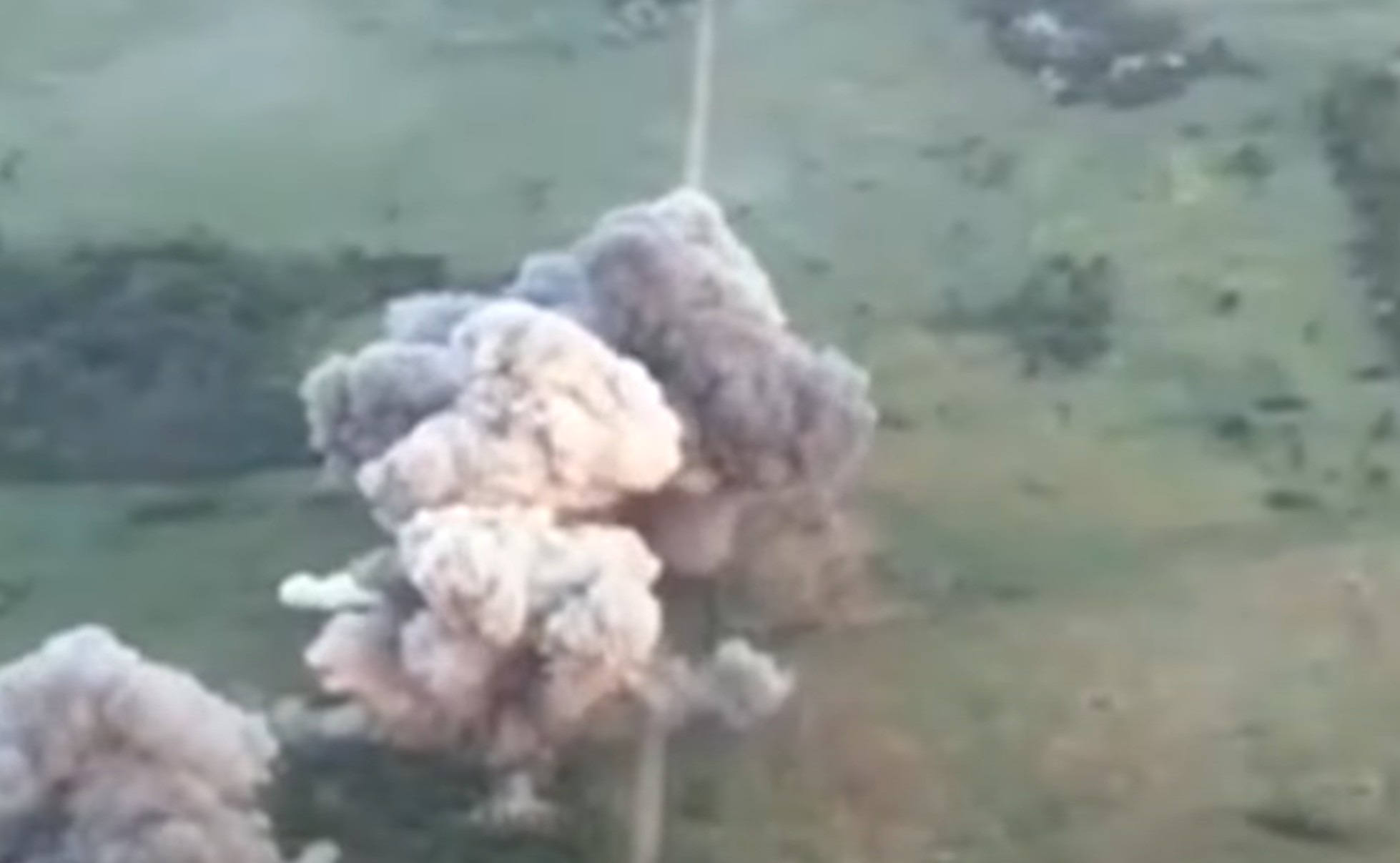폭격지점에 다다르자 러시아군의 Su-34 전폭기는 FAB-500 폭탄을 떨어뜨려 우크라이나군 진지를 공격합니다.